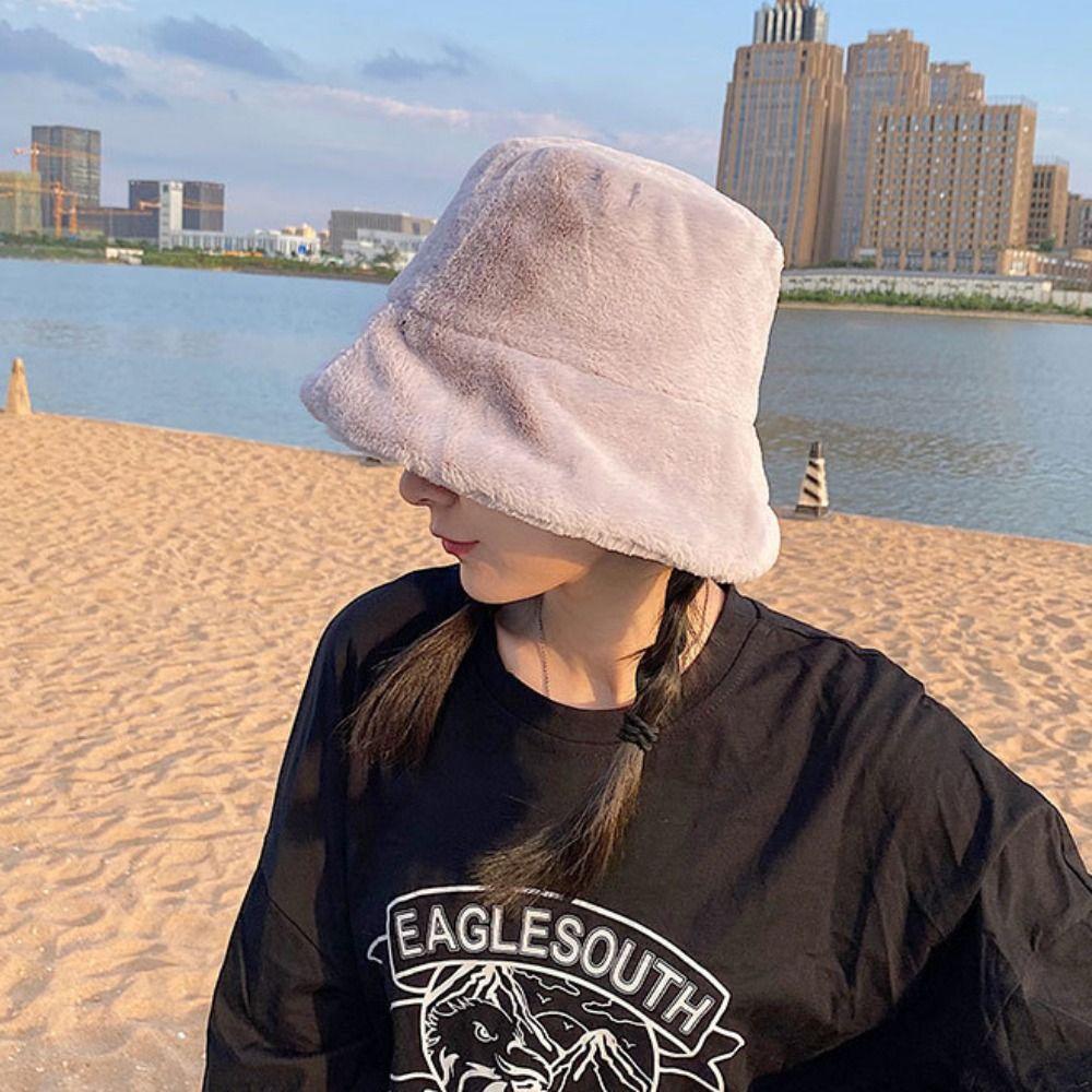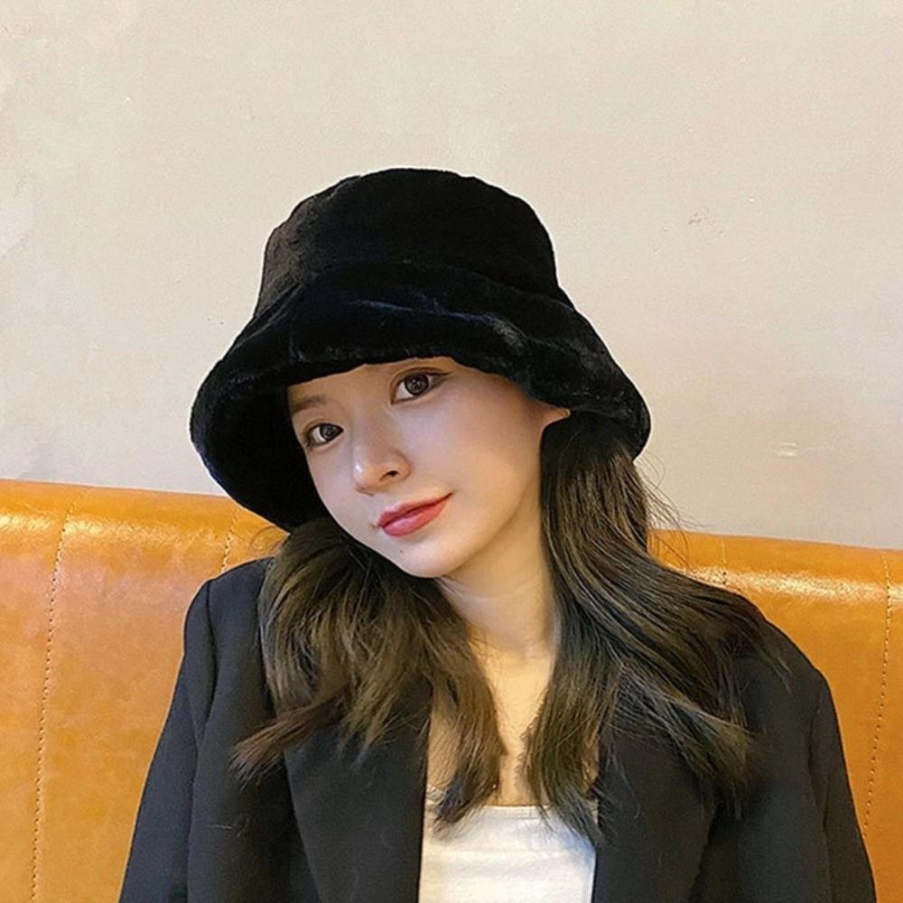 Ветрозащитная шерстяная шляпа-ведро в корейском стиле, теплая шляпа рыбака, плюшевая женская шляпа в стиле Харадзюку