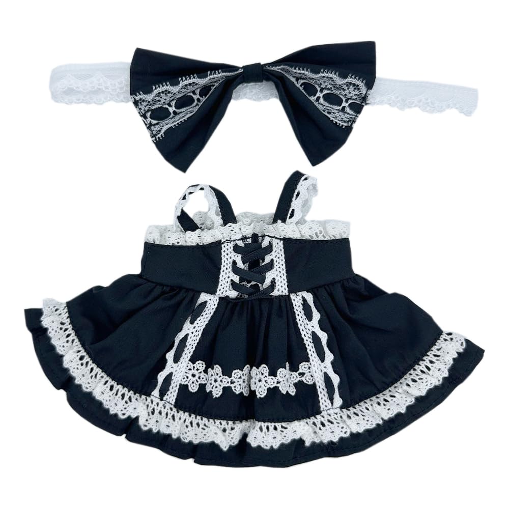 niannyyhouse 20cm Plush Doll Costume with Bow Tie and Dress, Cotton Doll Clothes (Black)