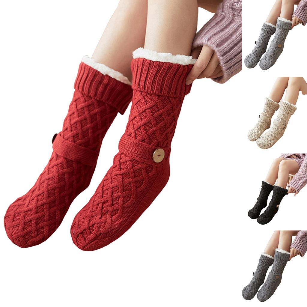 Женские зимние плюшевые носки для пола, Нескользящие домашние взрослые снежные носки, Утолщенные плюшевые домашние носки