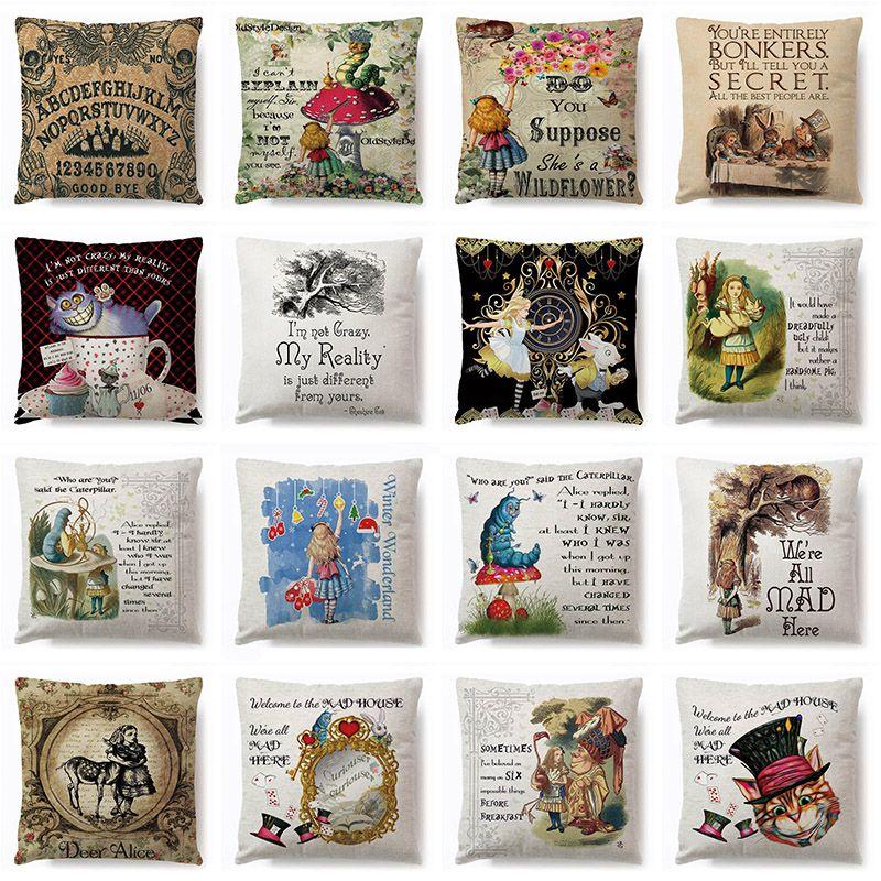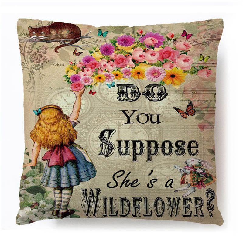 Хлопково-льняная наволочка «Алиса в Стране чудес» для очаровательного декора**