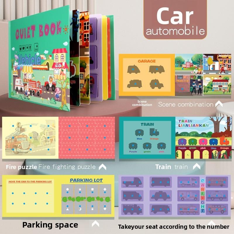 Деревянная развивающая книжка-занятие «Транспорт» с пазлами и наклейками для детей дошкольного возраста