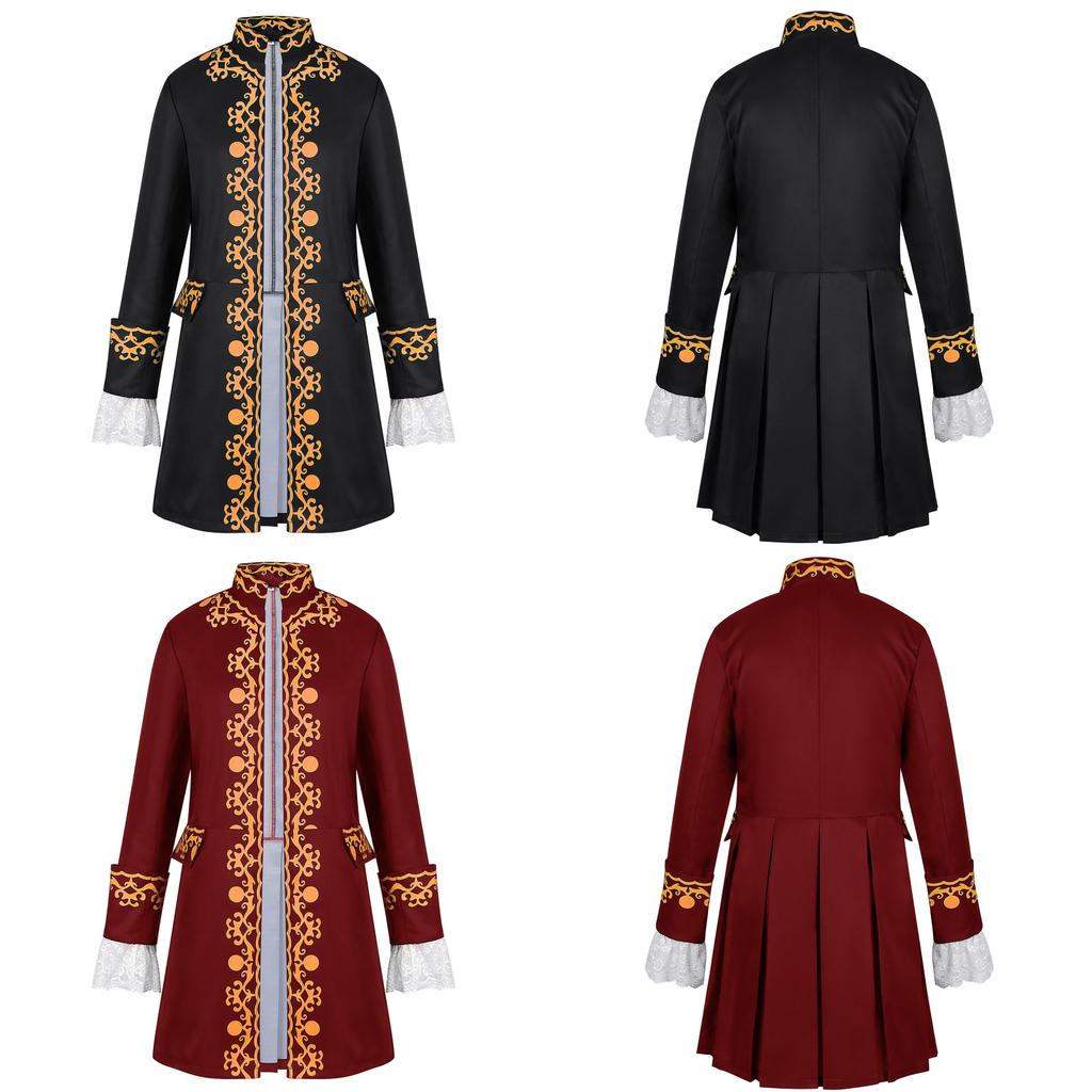 Уникальный дизайн: Эта куртка с длинными рукавами в средневековом стиле имеет стильный воротник-стойку и дизайн фрака, что делает ее идеальной для косплея и тематических мероприятий.