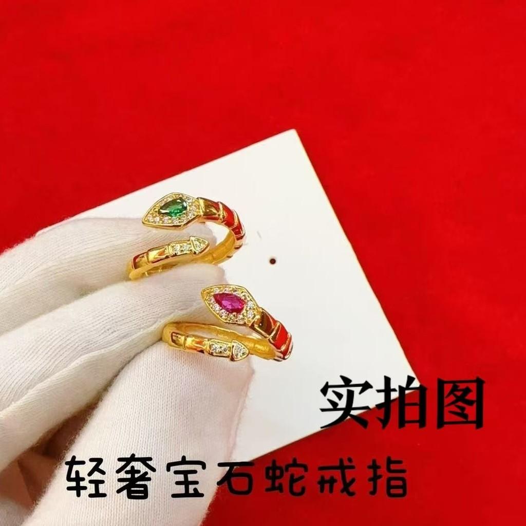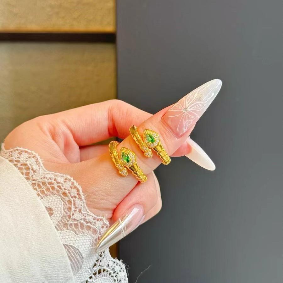 Элегантное вьетнамское кольцо-змейка с регулируемым размером, покрытое золотом, для женщин, с потрясающим дизайном из красных и зеленых драгоценных камней