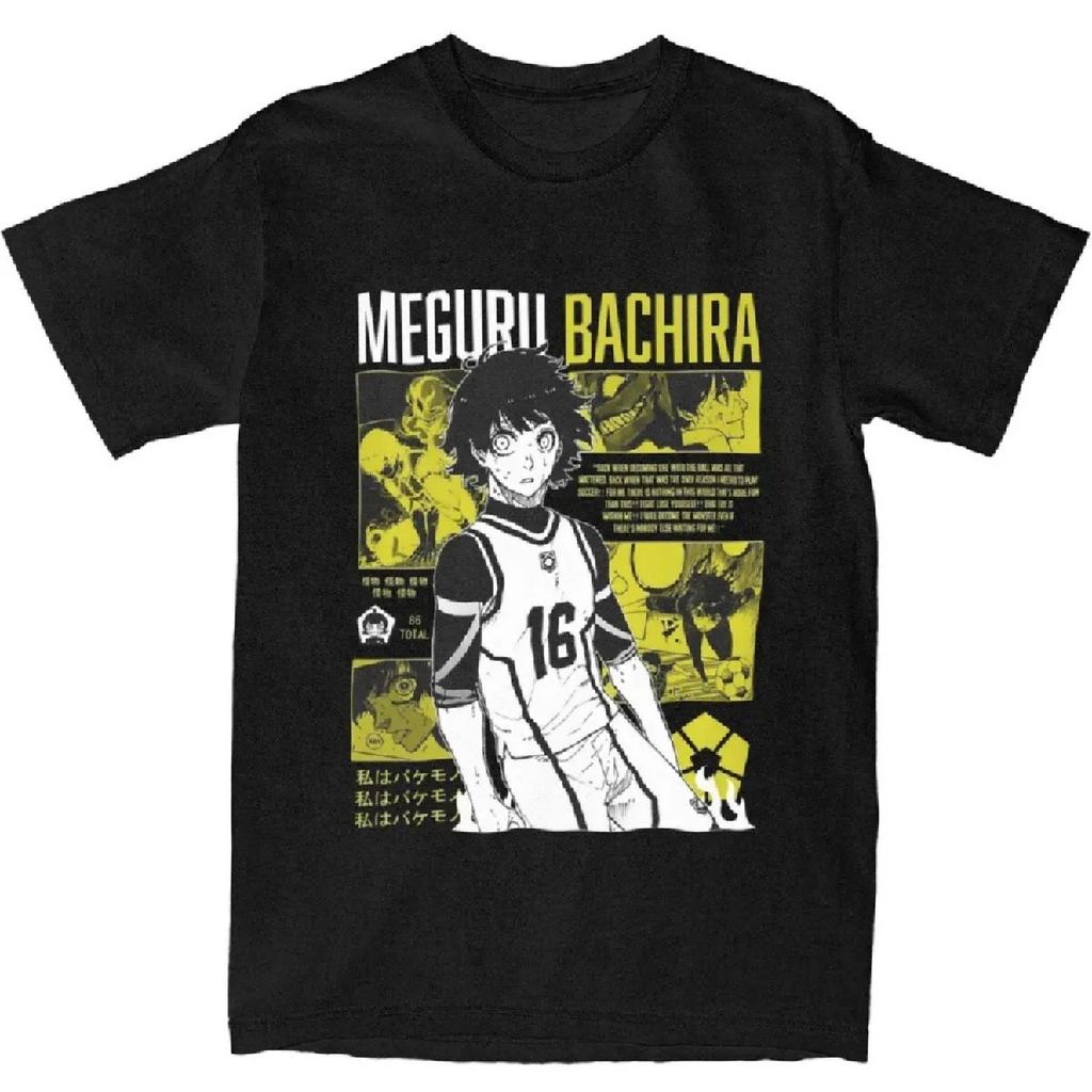 Мужские футболки BACHIRA MEGURU Blue Lock Аниме Хлопковые Топы Пляжная Винтажная Футболка с Коротким Рукавом Круглый Вырез Крутая Футболка Большого Размера