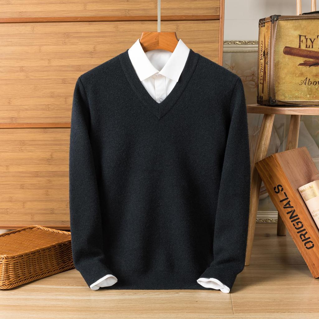 Coodrony Winter Knit Warm Solid Color Casual Business Basic Pullover Dark Men's V-Neck Sweater, Cardigan, (JP, Alphabet, 2XL, Green)