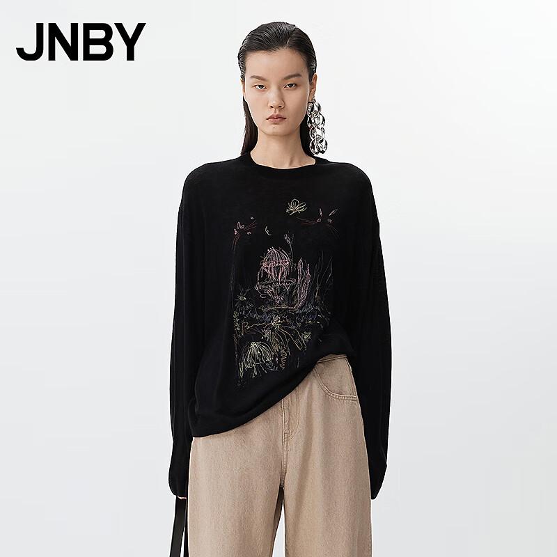 JNBY 2025 Весенний шерстяной свитер с вышивкой в виде парка