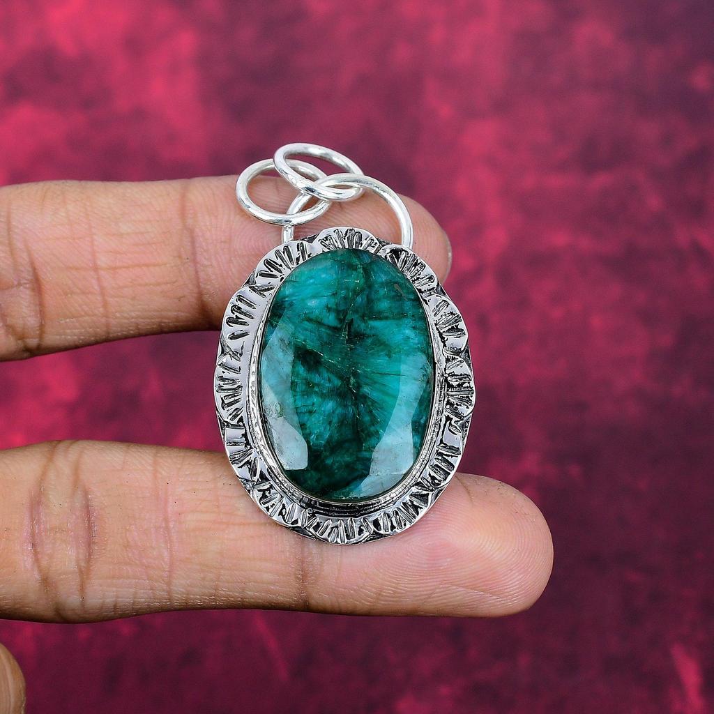 Подвеска с искусственным изумрудом, Подвеска из стерлингового серебра 925 пробы, Ювелирные изделия с драгоценными камнями, Подвеска ручной работы, Удивительные ювелирные изделия, Подарок для нее