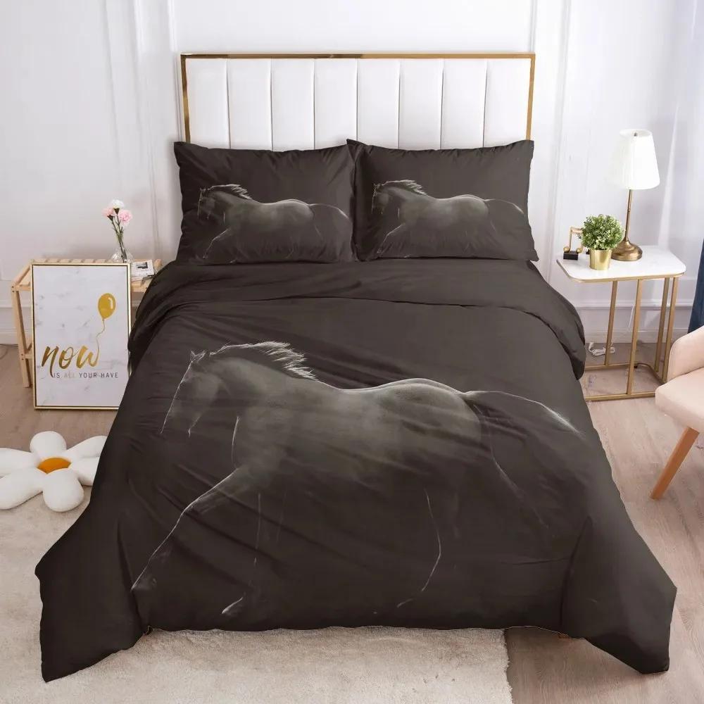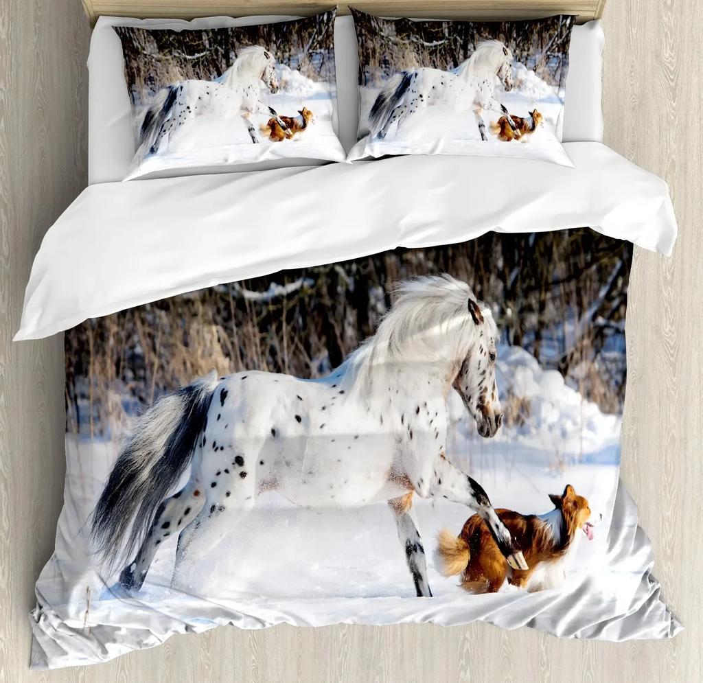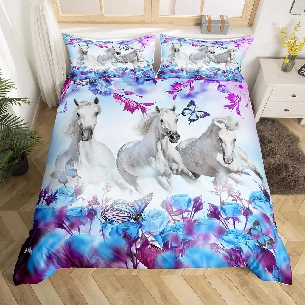 Комплект пододеяльника White Horse размера Queen 3D принт скакуна Комплекты постельного белья Дикая природа Покрывало для одеяла Животные Покрывало Покрывало