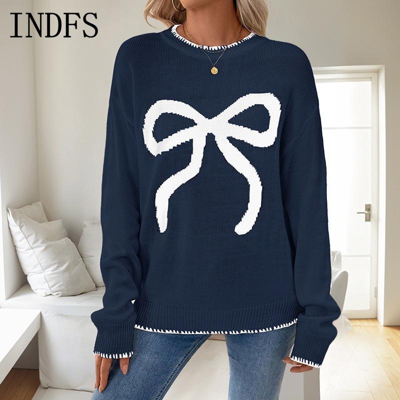 INDFS Модные женские повседневные свитера с длинным рукавом и круглым вырезом на осень-зиму — купить товар онлайн с бесплатной доставкой по всему миру!