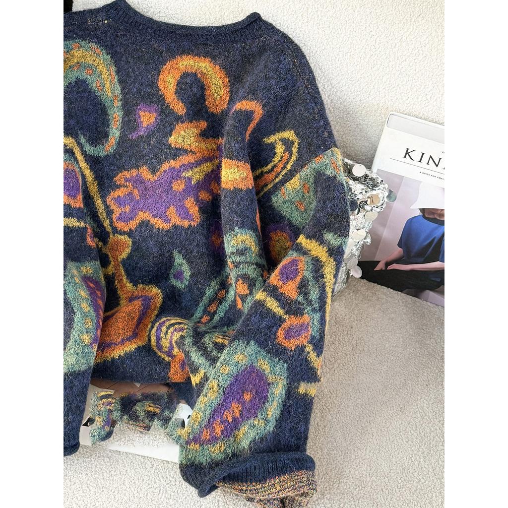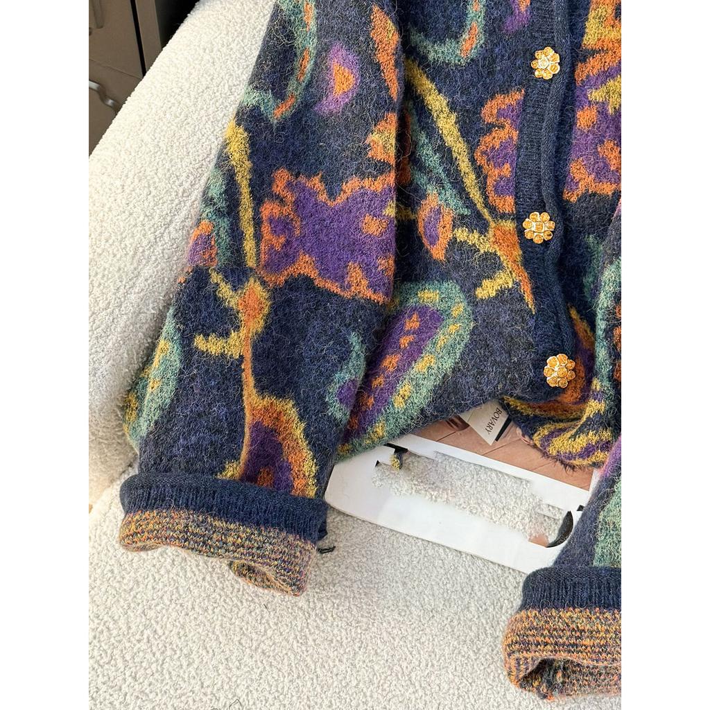 Женский свитер-кардиган Зимний утолщенный Металлический ле Ретро Модный Вышивка Мягкий Клейкий Ленивый Вязаный Жакет