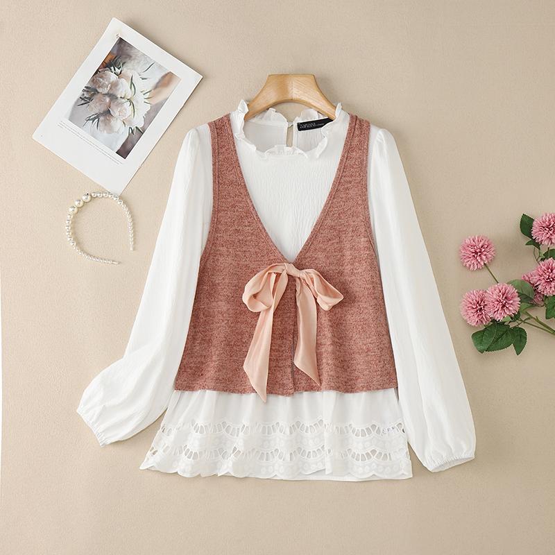 ZANZEA Женская повседневная блузка с круглым вырезом и длинным рукавом в стиле пэчворк
