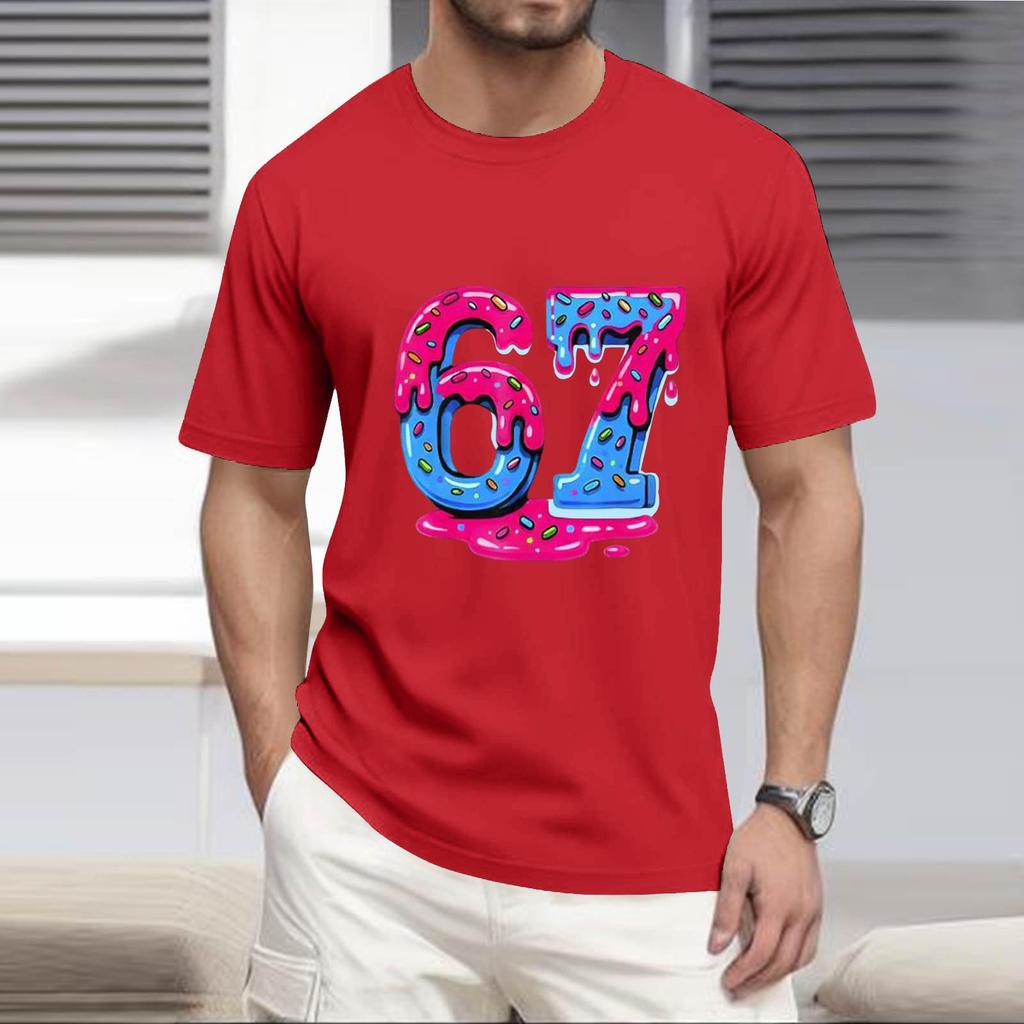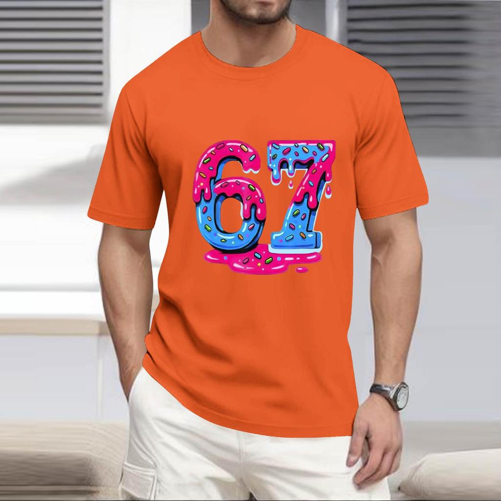 Мужская популярная футболка с принтом, круглым вырезом и коротким рукавом
