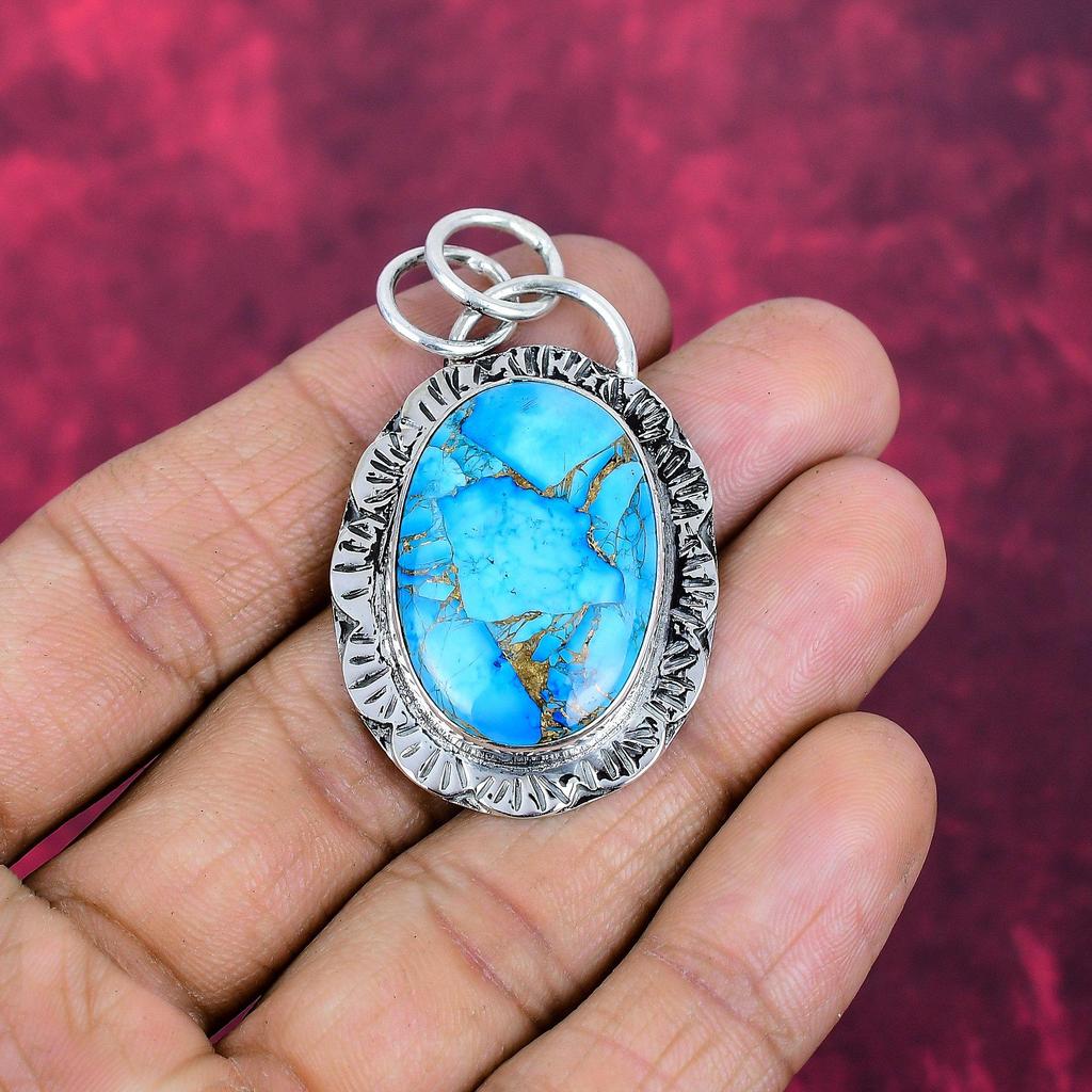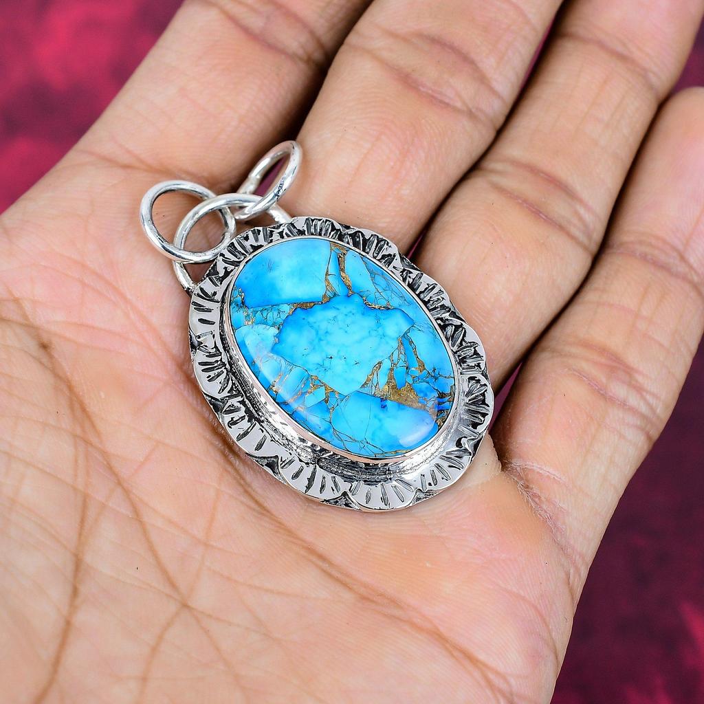 Голубой медный бирюзовый кулон ручной работы с драгоценными камнями, 925 пробы серебряный кулон, старинные ювелирные изделия, для подарка на помолвку
