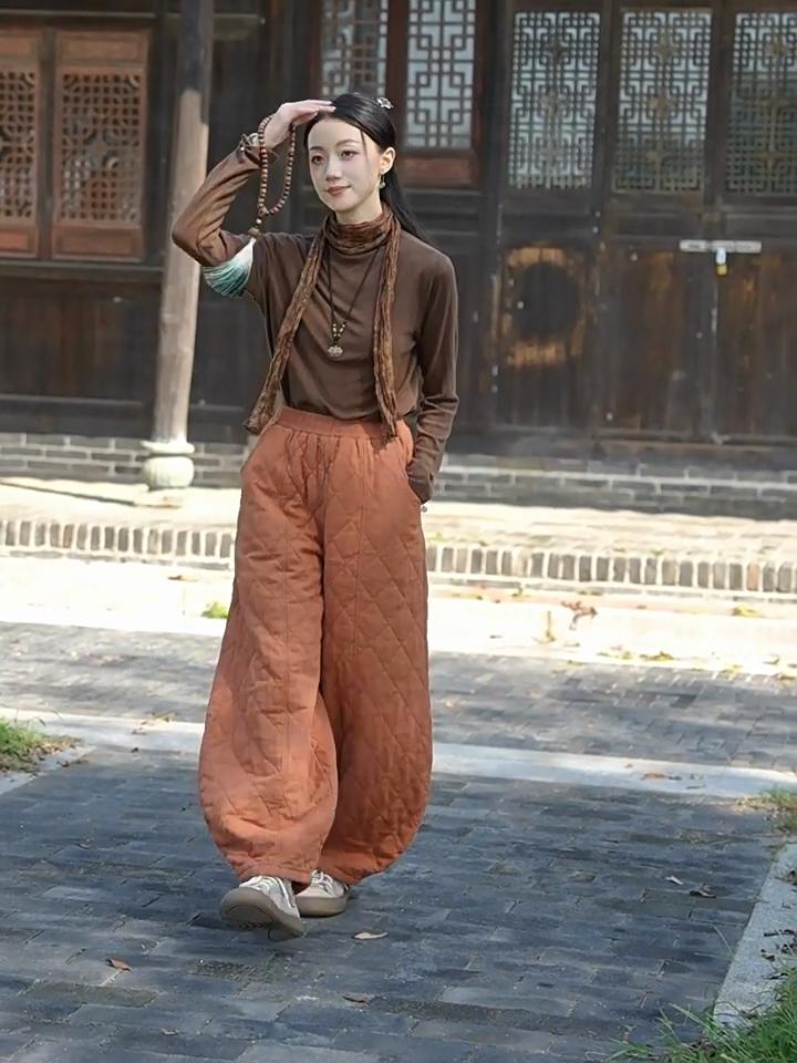 Johnature Женские винтажные панталоны Зимние брюки с эластичной талией Однотонные брюки Теплые свободные брюки — купить товар онлайн с бесплатной доставкой по всему миру!