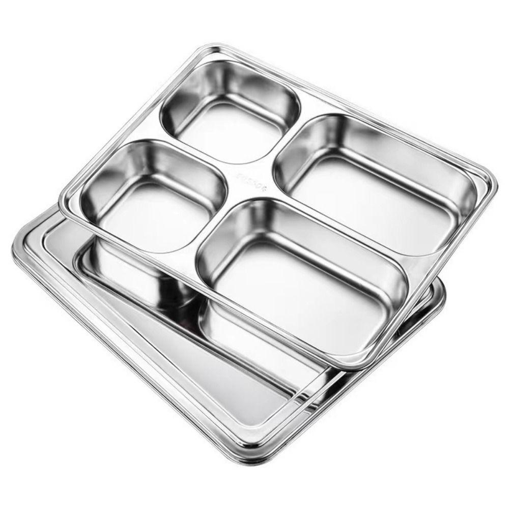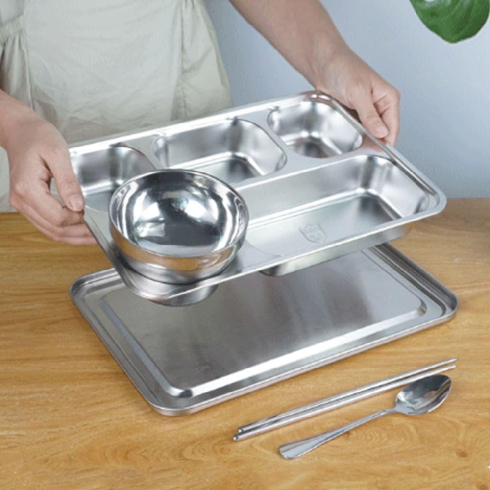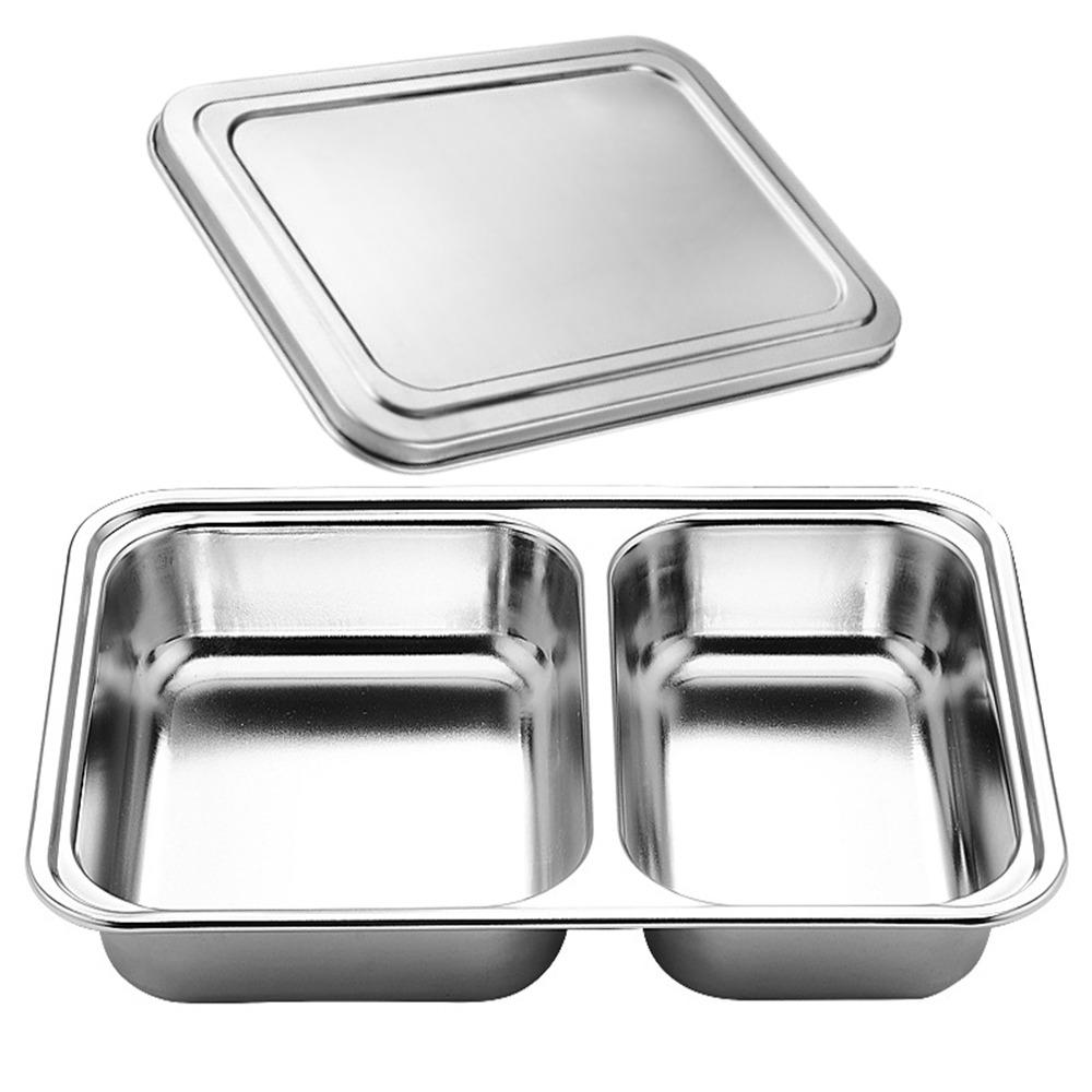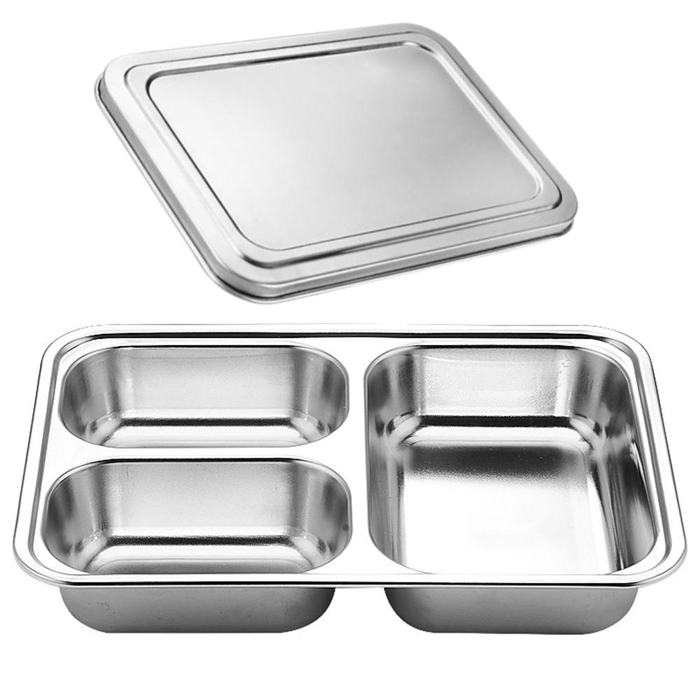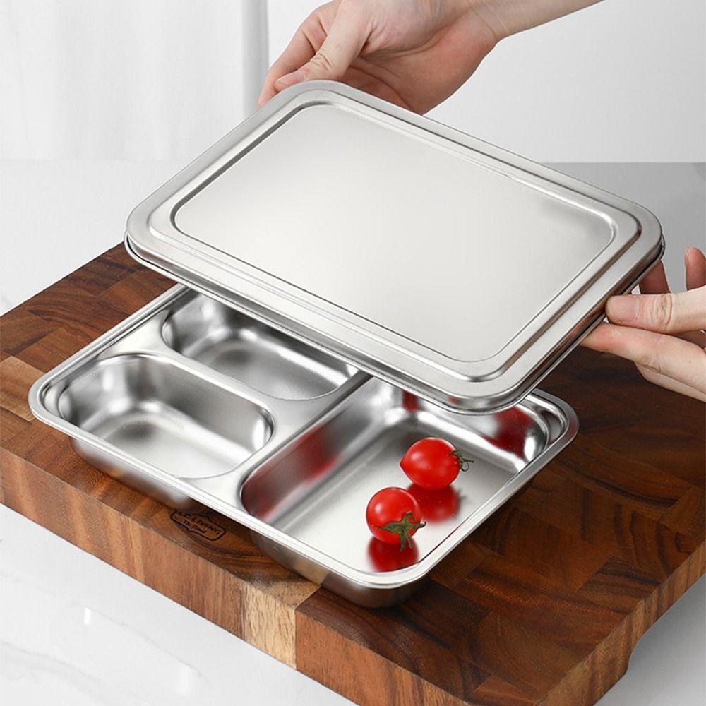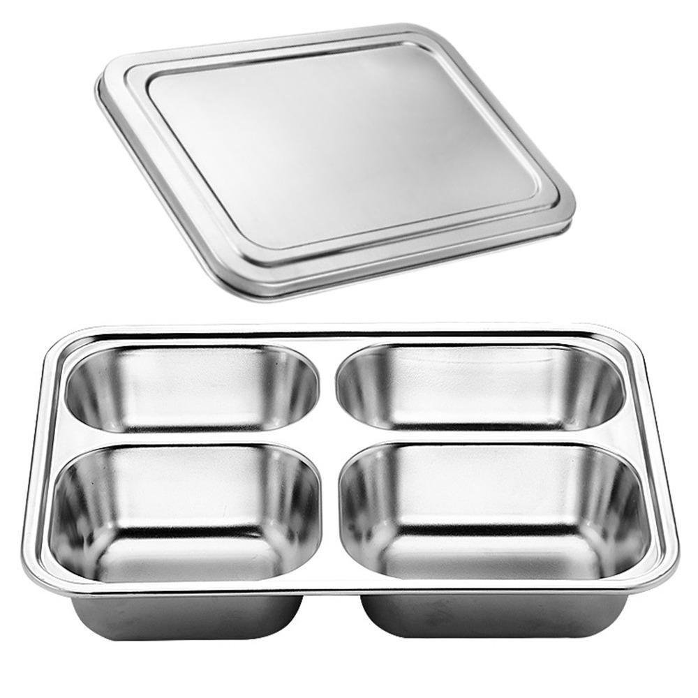С крышкой, разделенный ланч-бокс, тарелка для фаст-фуда из нержавеющей стали, контейнер для ланча, кухонная посуда