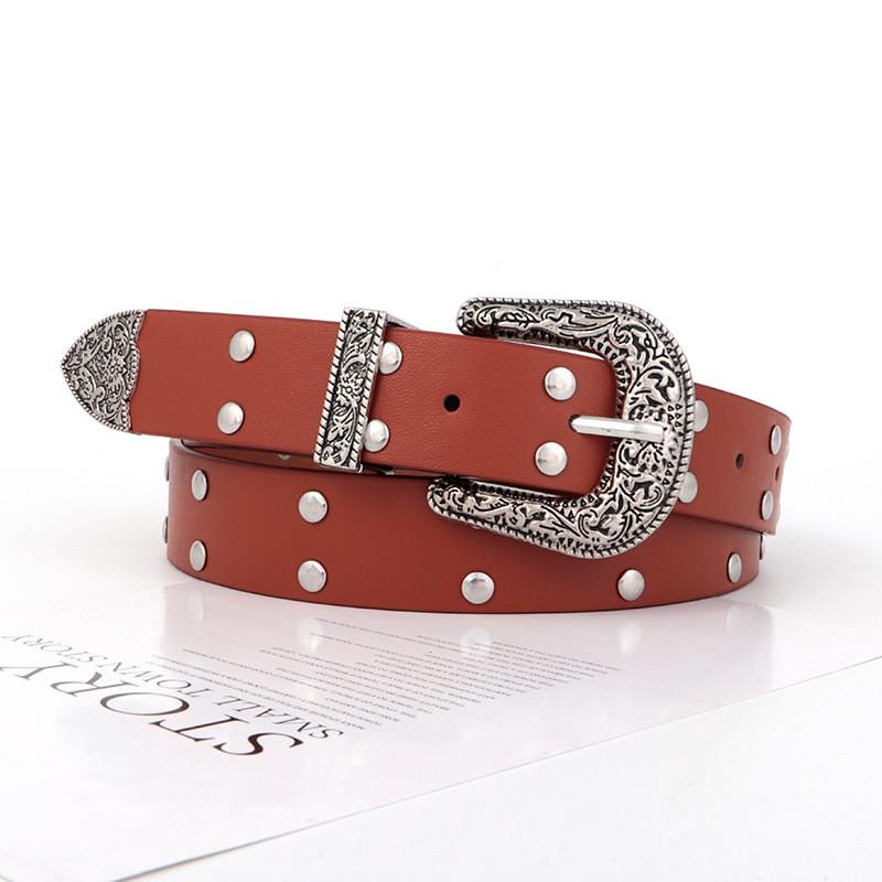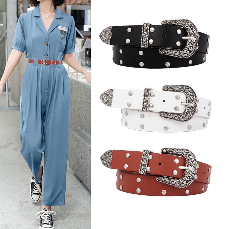 Универсальный и модный женский ремень в классическом панк-стиле с металлической пряжкой, идеально подходящий для джинсовых образов