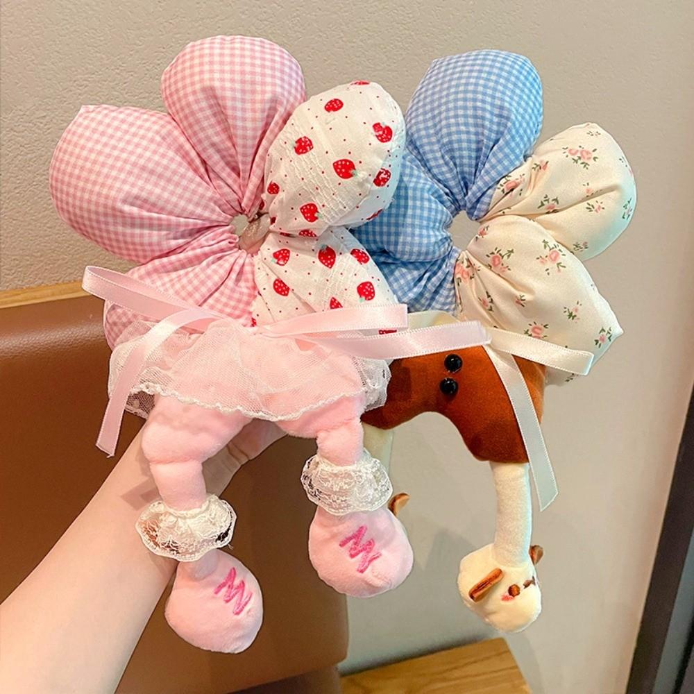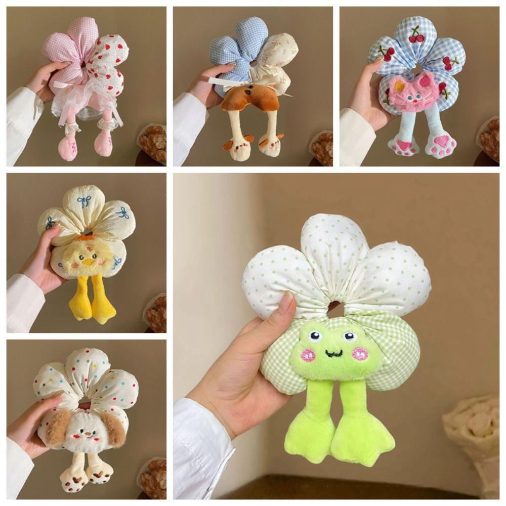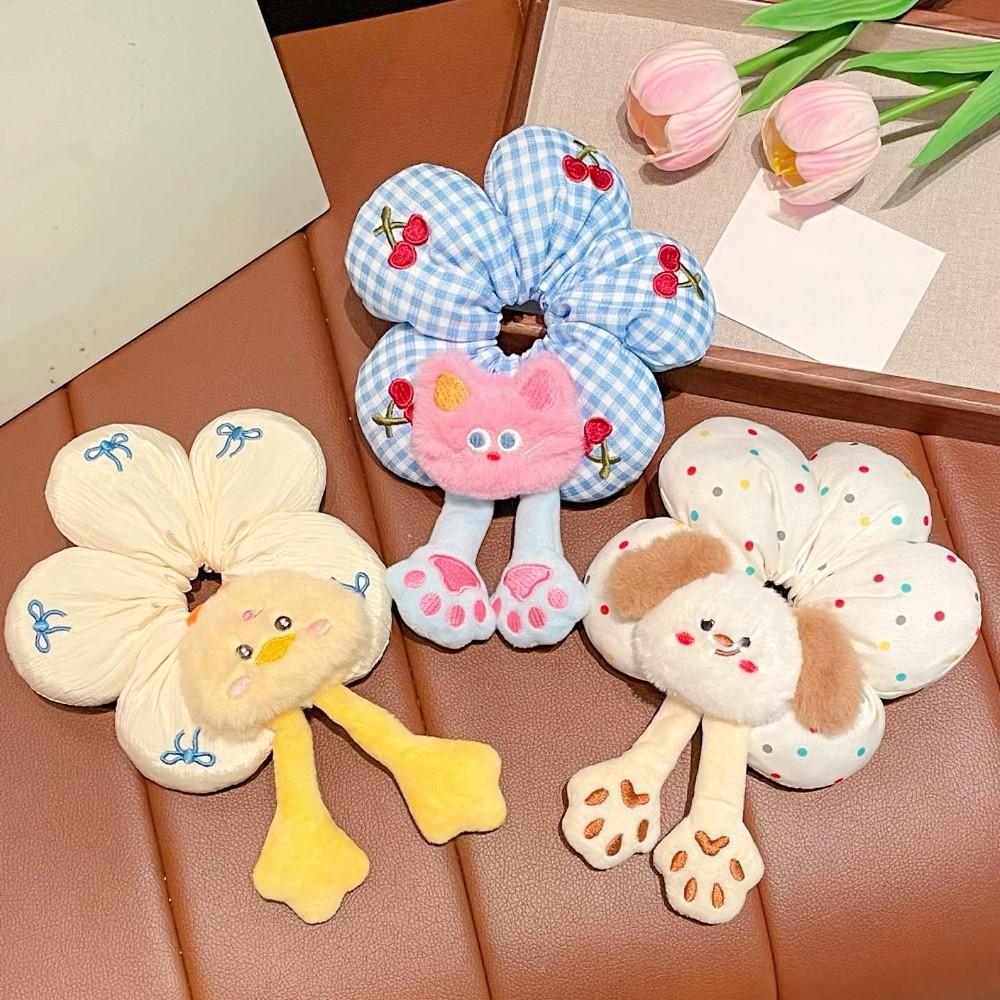 Cloth Animal Butt Hair Rope Cartoon Bun Rubber Bands Plaid Flower Hair Ring Amusement Park
