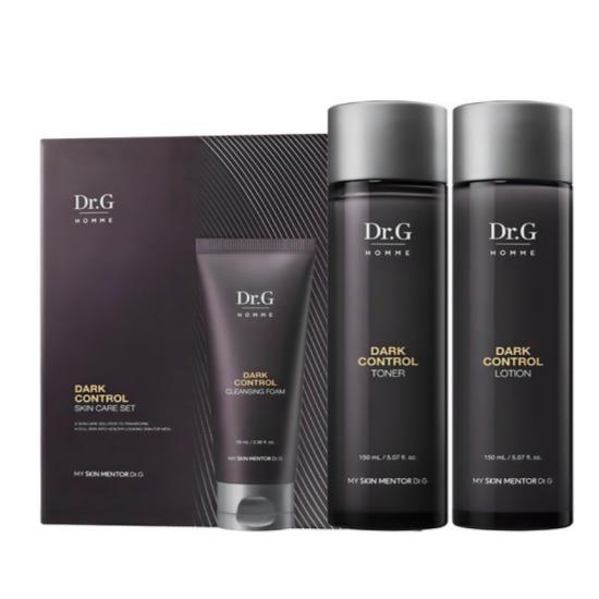 The Dr.G Homme Dark Control set is a comprehensive three-step skincare solution for men, designed to even out skin tone, reduce dullness, and provide balanced hydration. With a refreshing toner, a nourishing lotion, and a cleansing foam, this set supports a clean, moisturized, and revitalized complexion — perfect for daily skincare to combat dark spots and uneven skin tone.