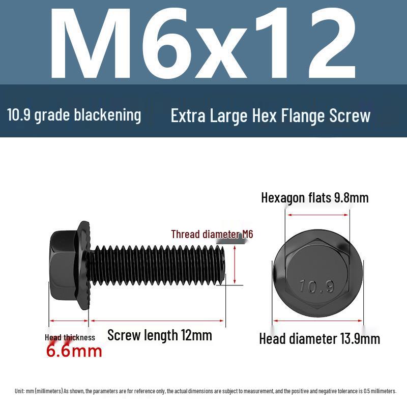 Yigu Grade 10.9 High-Strength Oversized Black Hex Flange Screw with Anti-Slip Washer (M6-M12)