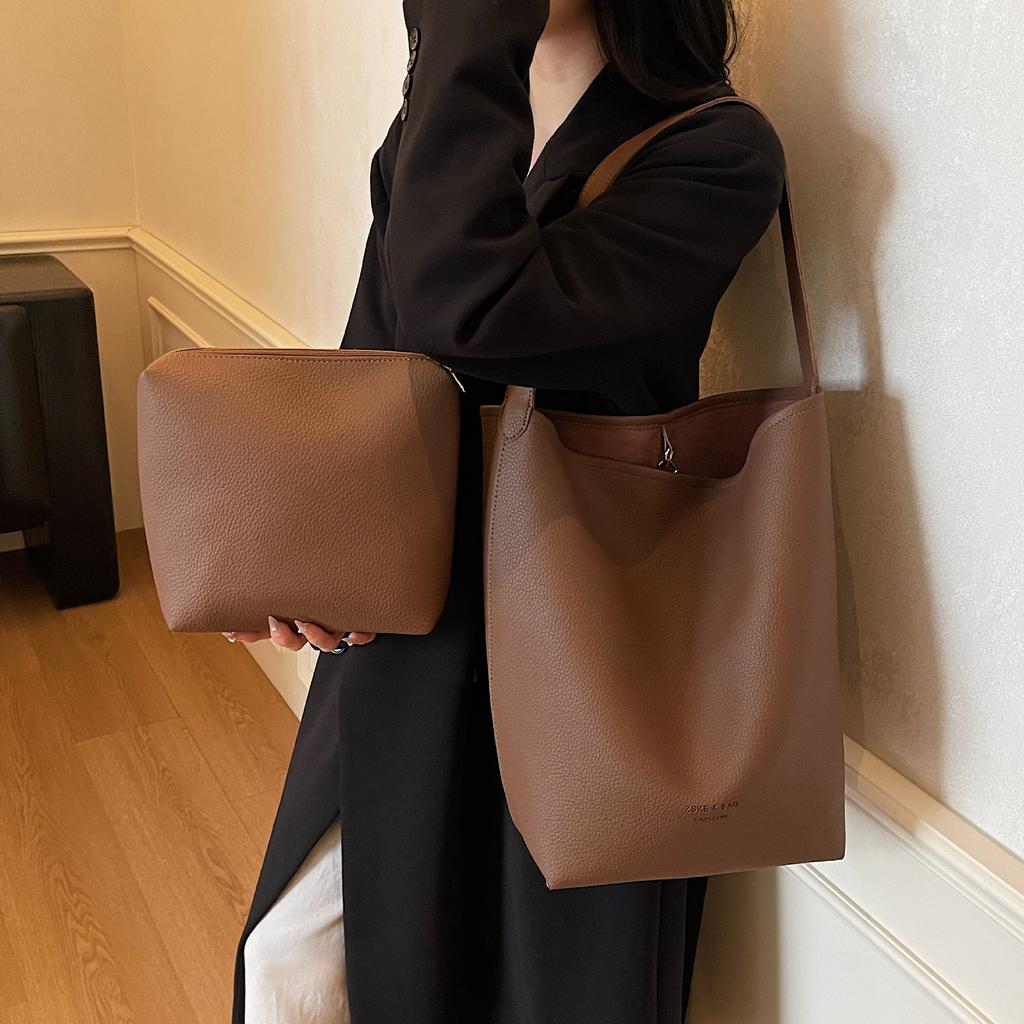 Большая сумка ленивого вида, Простая наплечная сумка, Сумка-ведро из мягкой кожи