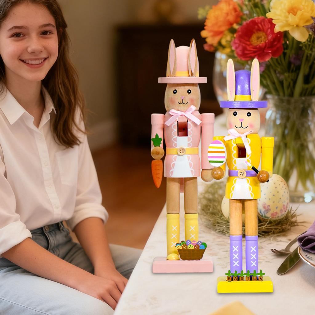 🎩 Основные характеристики продукта 🎩 Креативный дизайн: Нарушая условности! Сочетание очаровательного изображения Пасхального Кролика с классической формой щелкунчика. Он отличается живыми длинными ушами, четким мундиром солдатика-щелкунчика и тщательно проработанным выражением лица, что делает его как символом праздника, так и произведением искусства, полным историй.. Премиальное мастерство из массива дерева: Изготовлено из тщательно подобранной высококачественной древесины, плотной по текстуре и теплой на ощупь. . Тщательно отшлифовано и окрашено экологически чистой краской, цвет ровный, а детали реалистичны, что обеспечивает долговечность изделия и его неизменную привлекательность.. Гигантский и Привлекающий Внимание Размер: Возвышаясь на целых 30 см, он намного превосходит обычные щелкунчики.. Где бы он ни находился, это незабываемая визуальная доминанта, без труда усиливающая художественную атмосферу и праздничное настроение любого пространства.. Изысканное мастерство: От значка-звезды, шляпы и яркой, красочной униформы до меча на поясе и черт лица, каждая деталь демонстрирует преданность мастера.. Его рот — это классическая подвижная конструкция, сохраняющая традиционное значение «трескать и приносить удачу». Праздничное украшение для разных сцен: Пасхальный: Как «Заяц» Пасхи, он охраняет яйца, добавляя в дом .