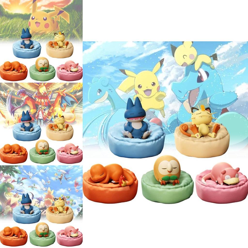 Фигурка Покемон Чармандер Снорлакс Слоупок Роулет Мяут для украшения рабочего стола в спящей позе, эта очаровательная фигурка изготовлена из высококачественного ПВХ и демонстрирует некоторых из самых популярных персонажей вселенной, включая культового Пикачу и очаровательного Чармандера.
