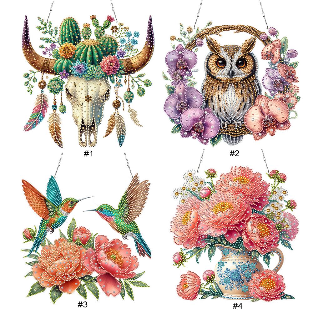 Acrylic 2D Flat DIY Special Shape Hanging Diamond Art Kits Rhinestone Diamond Art Window Pendants DIY Home Decor Hanging Charm