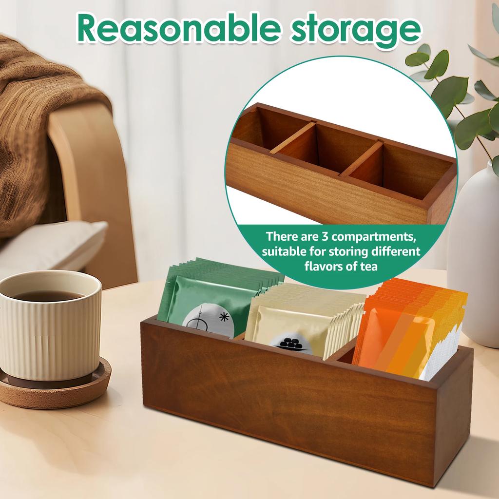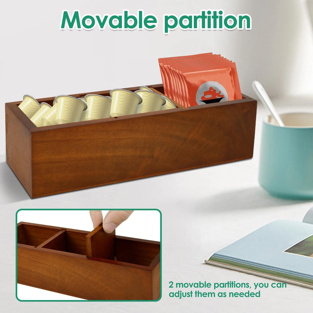 1 шт. Новый держатель для чайных пакетиков Деревянный контейнер для чайных пакетиков Органайзер для хранения чайных пакетиков со съемными разделителями для кухни Офис Столешница