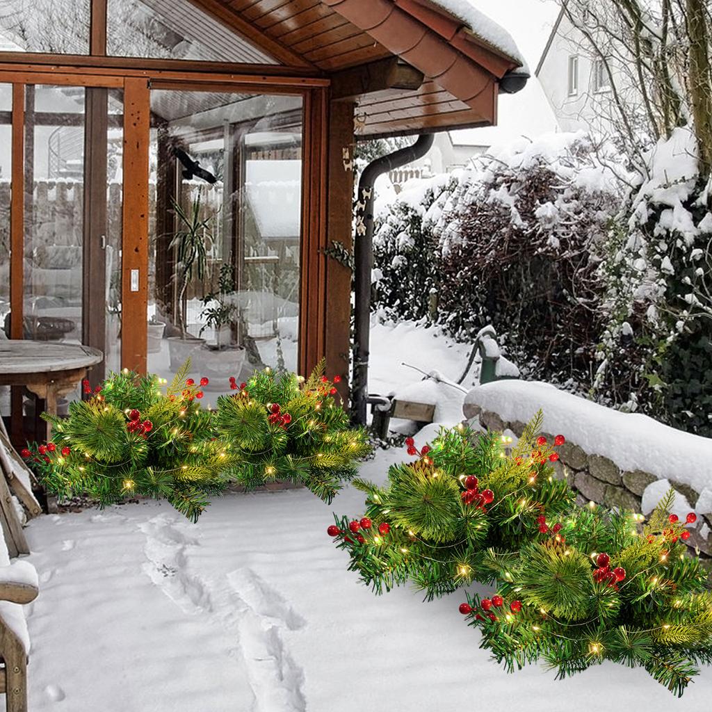 Уличная имитация двора, украшенного светящимися иголками и красным