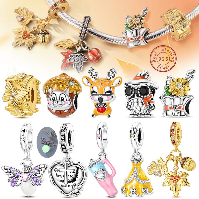 Оригинальные медные шармы, бусины, подвески, кленовый лист, белка, бабочка, кошка, бусины, подходят для браслетов, женское ювелирное украшение, аксессуар — купить товар онлайн с бесплатной доставкой по всему миру!