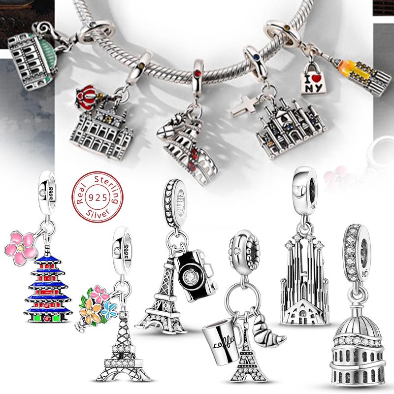 Оригинальные медные шармы-бусины Париж Эйфелева башня Церковь Подвеска Подходит для браслета Бангла Подвеска Женские DIY Ювелирные изделия Подарок