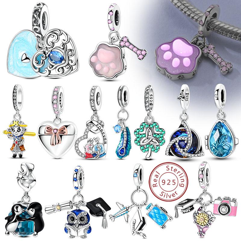 New Copper Charms Bead Penguin Owl Bow Heart Charm Fit Original Pendant Bracelet Jewelry Making For Women Gift