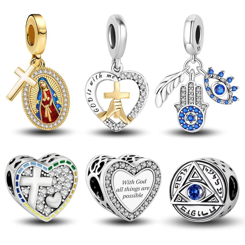Медные Шармы Серии Молитвенный Крест в Форме Сердца Любви Бусина для Изготовления Браслета-Браслета Своими Руками Подарок Высококачественной Изысканной Ювелирии