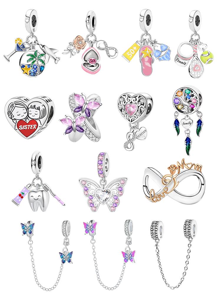 Медь Сестра Любовь Сердце Бабочка Роза Подвеска Шармы Бусины Подходят Оригинальный Пан Браслет Браслет Сделай сам Ювелирные изделия