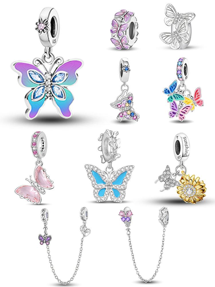 Медные Милые Шармы-Бусины Серии «Бабочки» Подходят для Оригинального Браслета-Пандоры, Высококачественные DIY Украшения для Женщин