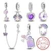 Медь Пурпурная Серия Любовь Сердце Цветок Страховочная Цепочка Шарм Бусины Подходят Оригинальным Пан Браслетам Браслетам Ювелирный Подарок