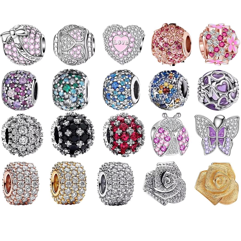 Красочные Шармы Полностью из Бриллиантов Медное Сердце Распускающаяся Роза Круглые Бусины Подвеска Подходят для Оригинальных Браслетов Ожерелий Ювелирных Изделий