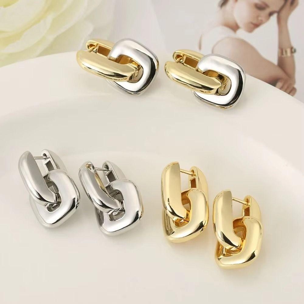 Серьги овальной формы с золотым покрытием, Преувеличенный стиль, Серьги U-образной формы, Дизайн в стиле пэчворк