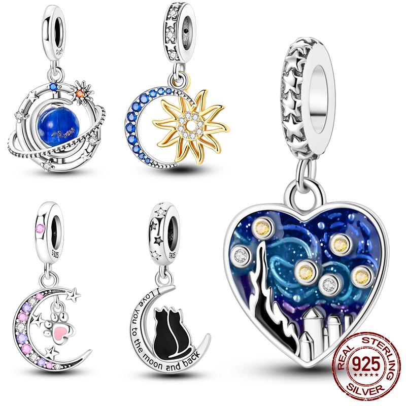 Новая медная подвеска Солнце Луна, шармы Звездная ночь Ван Гога, бусина подходит для оригинального браслета для женщин, подарок своими руками