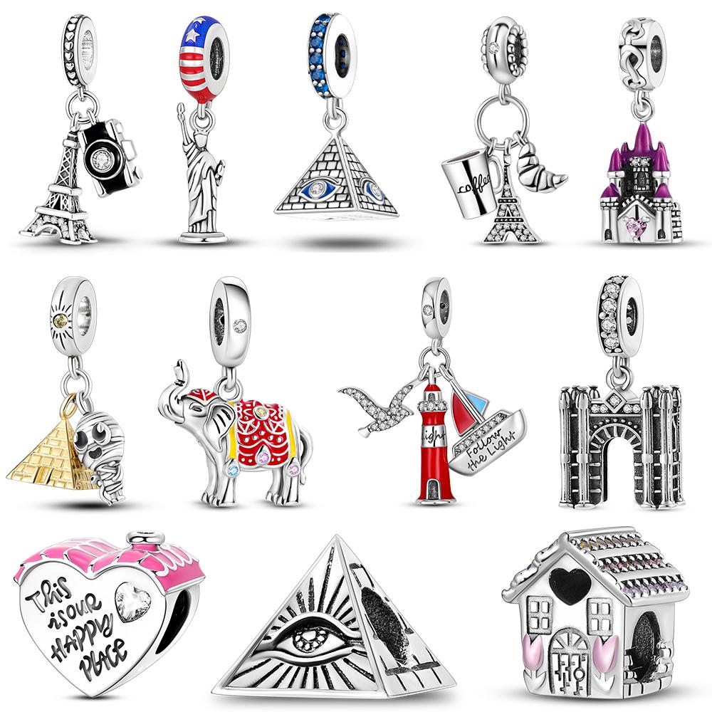 Медь Эйфелева башня Пирамида Путешествия Флаг страны Шарм Подходит для оригинального браслета Ожерелье Бусины Подвеска Женские DIY украшения