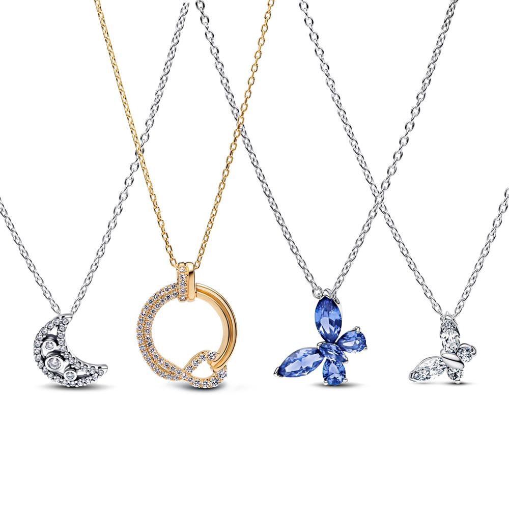 Sparkling Copper Gold Infinite Diamond Pavé Circle Necklace Moon&Butterfly Necklace For Women Dazzling Winter Gift