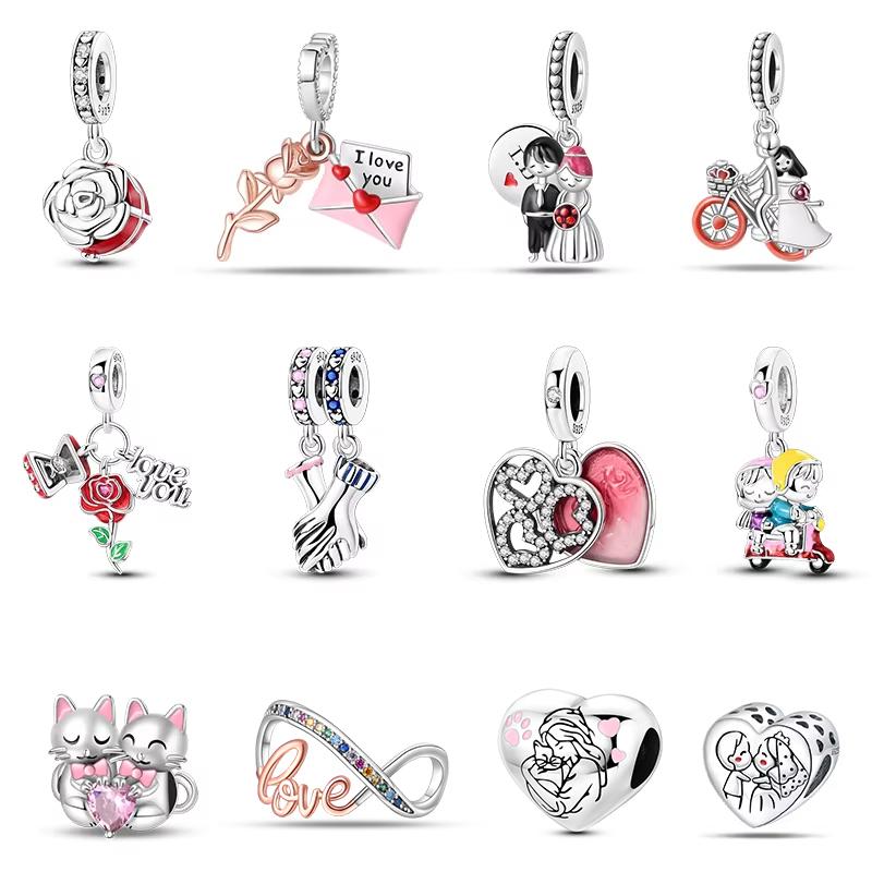 Медь Романтическая Пара Роза День Святого Валентина Шармы Бусины Подходят для Оригинальных Браслетов Qikaola Изысканные DIY Ювелирные Изделия Подарки