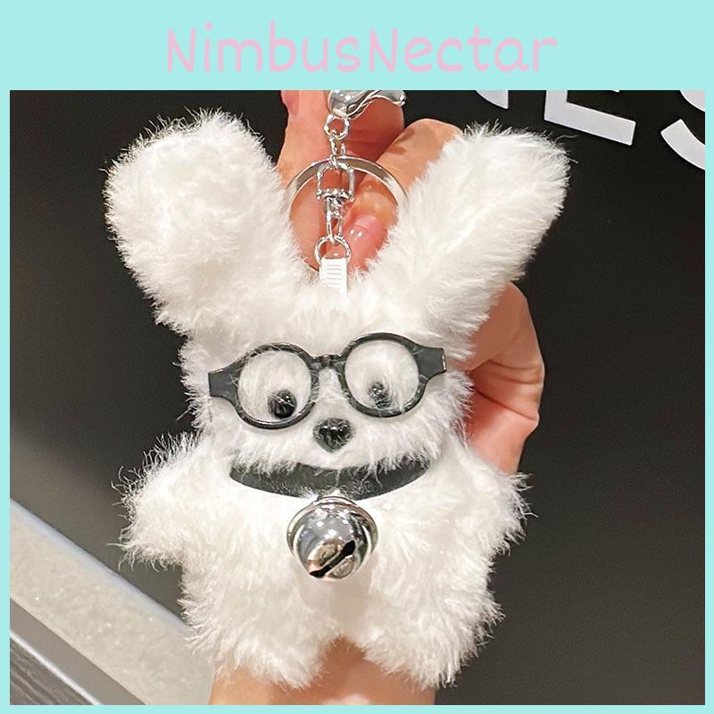Charming Plush Dog Keychain With Trendy Glasses And Vibrant Color Options Available
