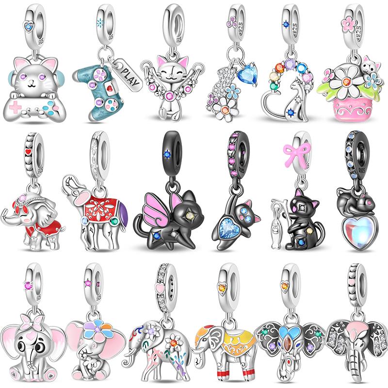 Оригинальные медные шармы-бусины, подвеска в виде черного кота, красочного слона для браслета, женские DIY украшения, подарок для рукоделия