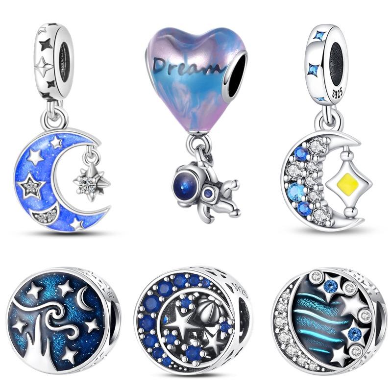 Новый медный шарм серии «Звезды и Луна», подходит для браслета Пандора, сделай сам, бусина, женское ювелирное украшение, подарок, оригинал