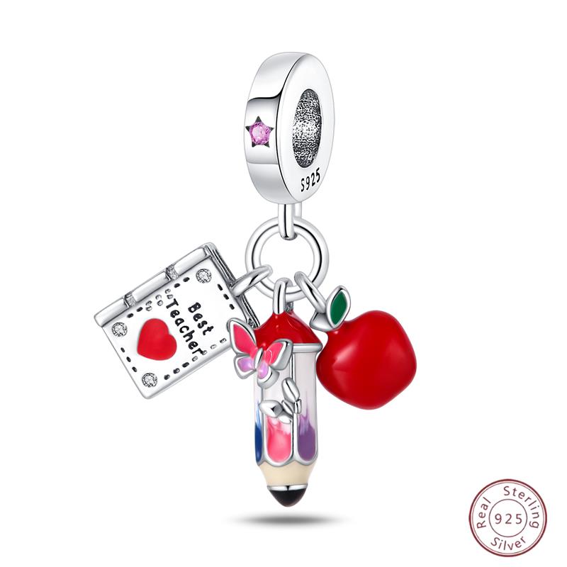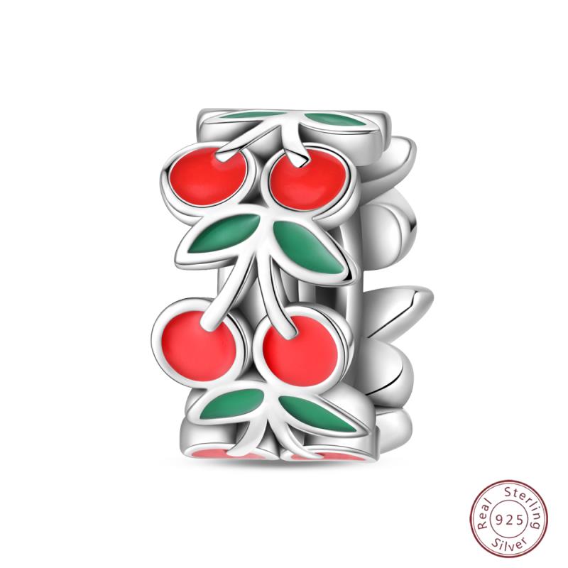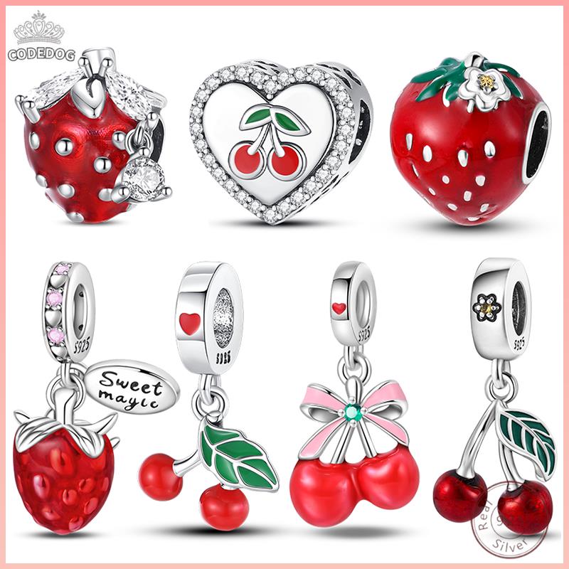 Медный кулон с бусинами Красный блестящий циркон Фрукт Клубника Вишня Для оригинального браслета 3 мм Женские изящные украшения