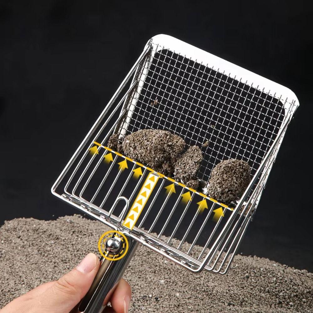 Stainless Steel Metal Cat Litter Scoop Ergonomic Handle Pets Poop Sifting Tool Kitten Care