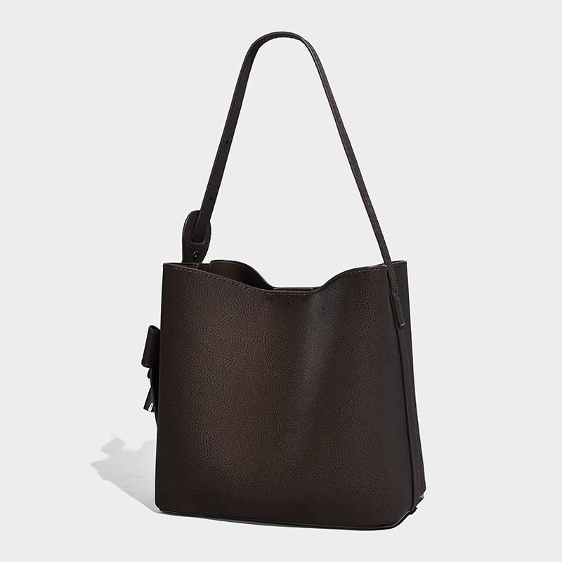 2025 Новая сумка-ведро с узором личи, сумка через плечо, европейский и американский ретро нишевый дизайн, сумка большой вместимости, простая женская сумка