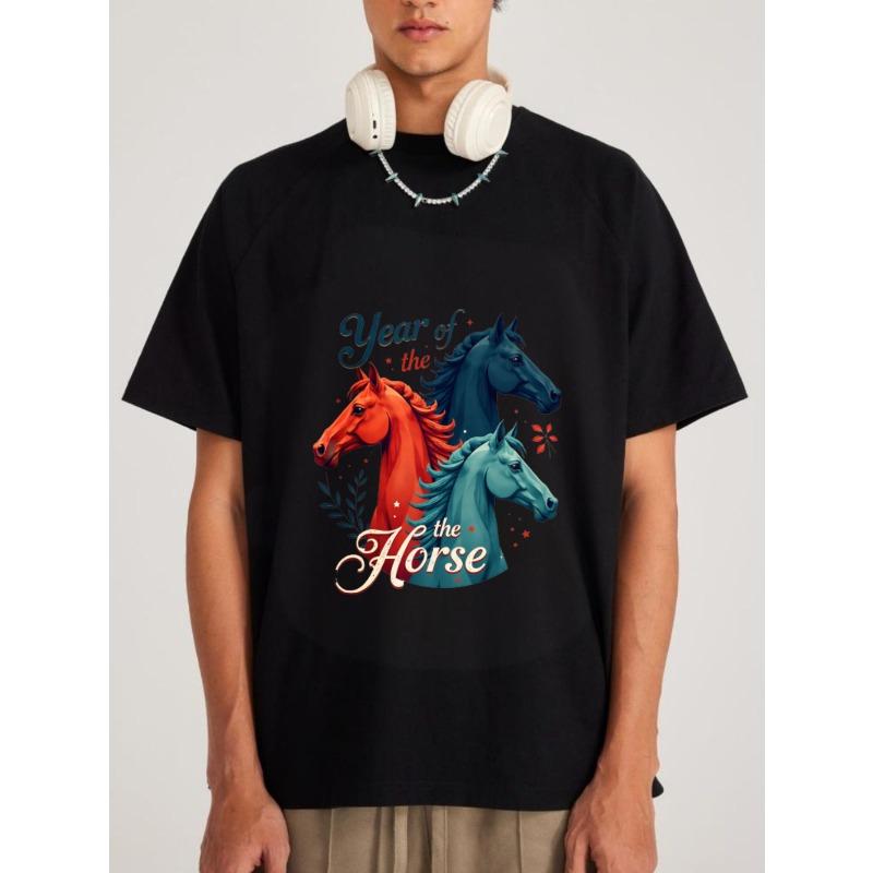 Белая футболка с принтом «Год Лошади» с тремя лошадьми и цветочным дизайном для повседневной носки — купить товар онлайн с бесплатной доставкой по всему миру!