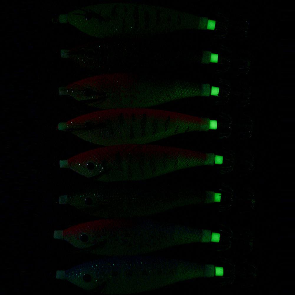 Glowing Horizontal Squid Trolling Lure Artificial Squid Jigging Eging Wood Shrimp Hooks Octopus Hook Cuttlefish Bait for Fishing